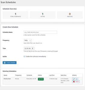 Multiple scan schedules run independently with customizable frequency and timing, and the system handles large installations without affecting site performance. Administrators set the monitoring scope once and the system operates on its own from that point forward.